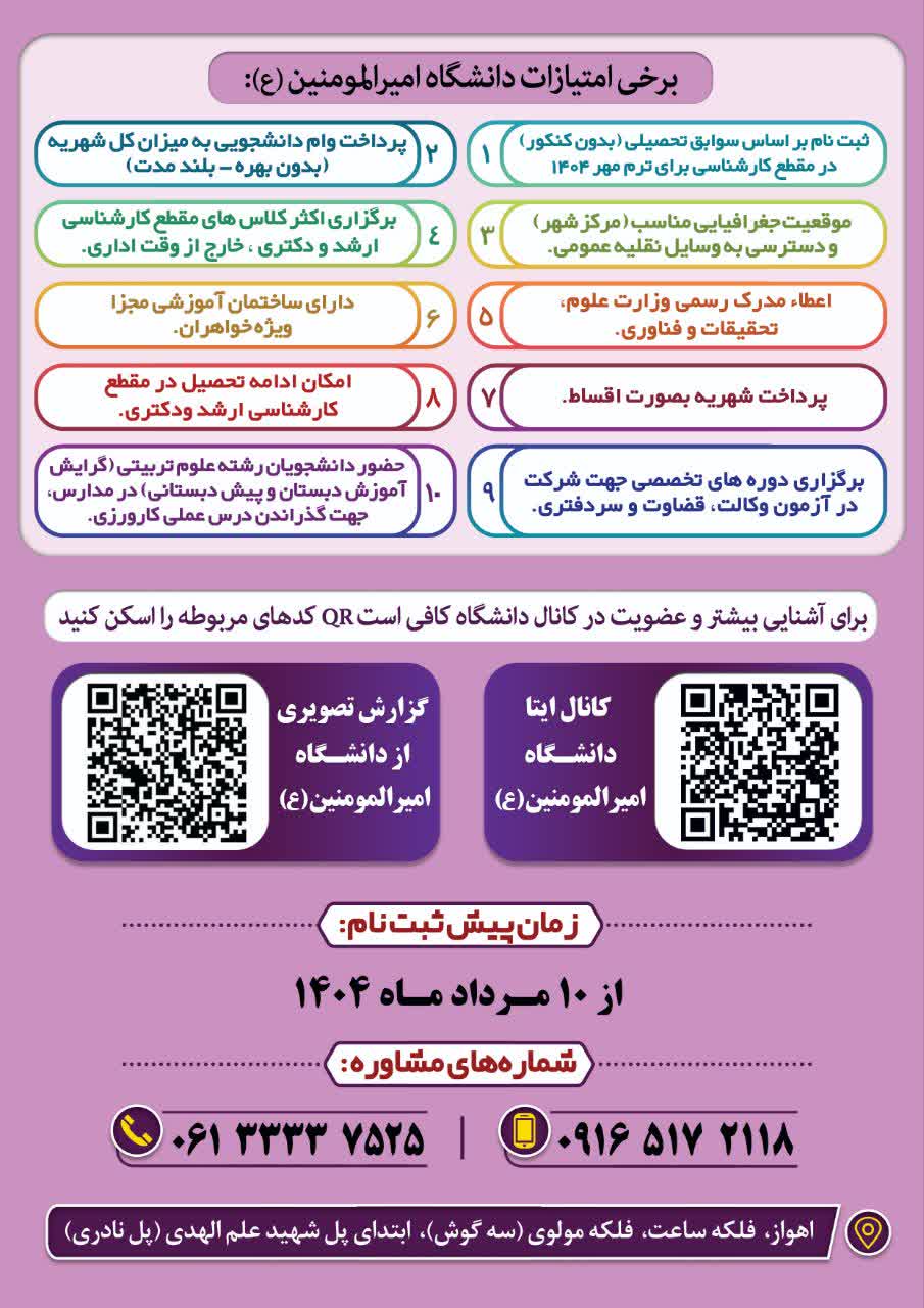 ثبت نام مقطع کارشناسی دانشگاه امیرالمومنین (ع) اهواز
