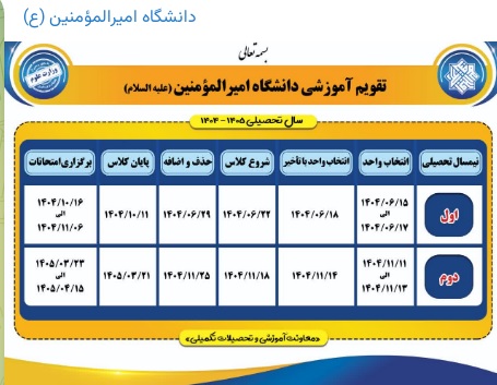 تقویم آموزشی دانشگاه امیرالمومنین (علیه السلام)